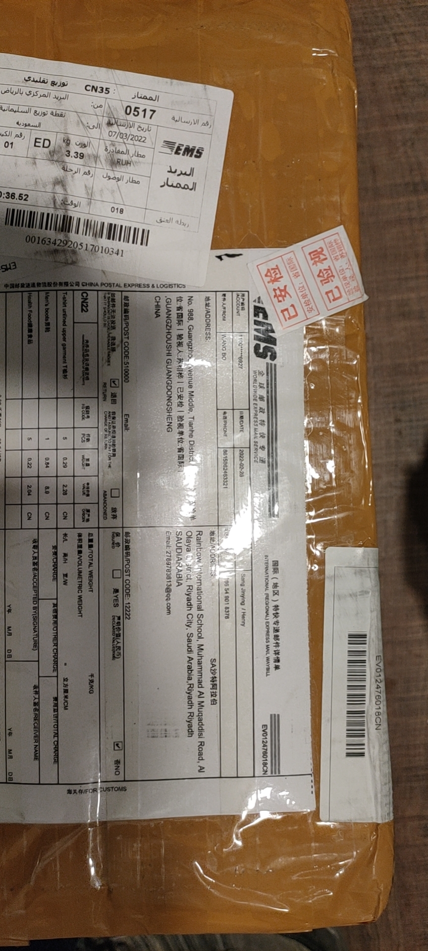 已經(jīng)多次往英國(guó)郵寄包裹了,每次都很快,包裝非常好,謝謝榮耀總體評(píng)分:5分 安全可靠:5分 服務(wù)一流:5分 省心省力:5分 跟進(jìn)及時(shí):5分 性?xún)r(jià)比高:5分
